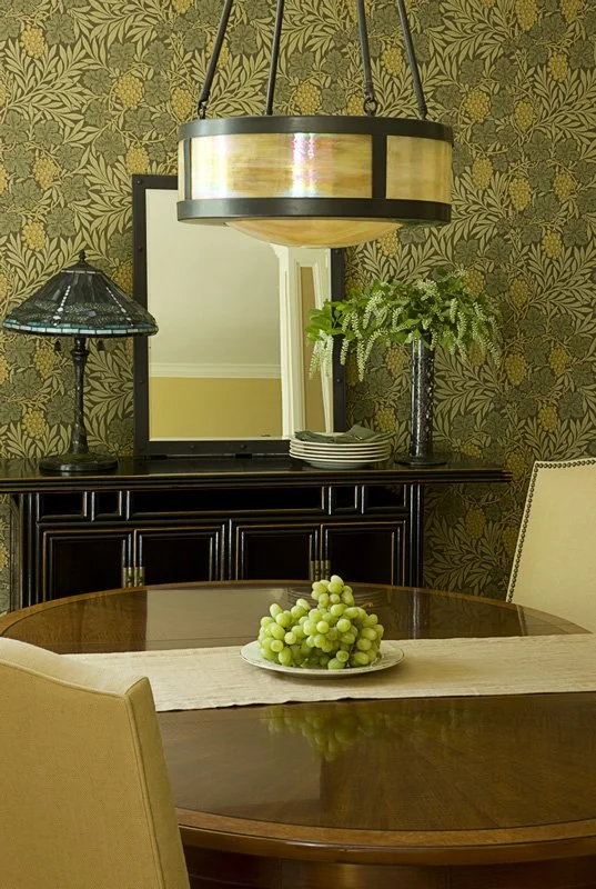 Two condominiums were combined to create a unique craftsman-inspired home complete with William Morris textiles and wallpaper used in a modern, clutter-free manner. The genius of Morris and his contemporaries proves relevant to contemporary living.